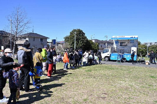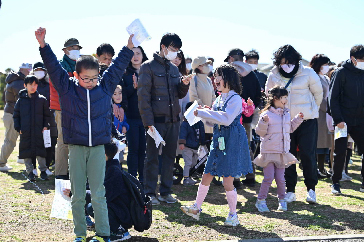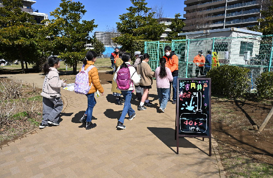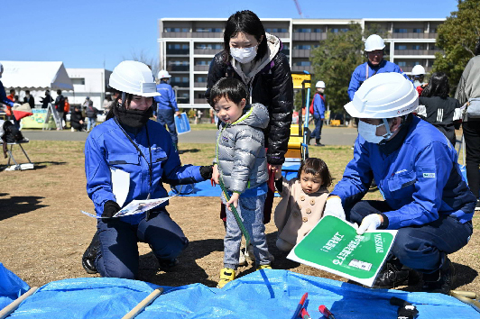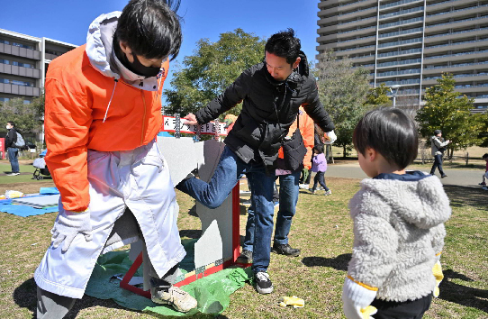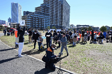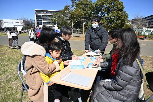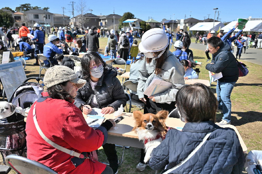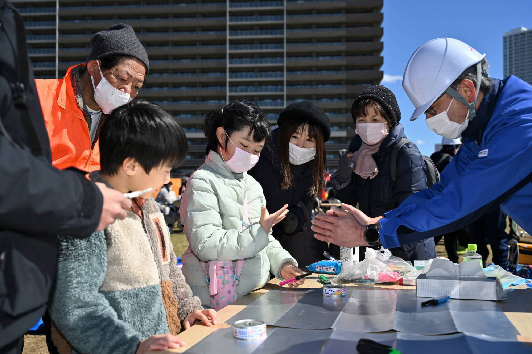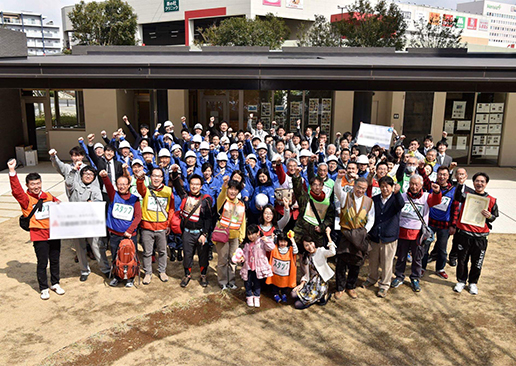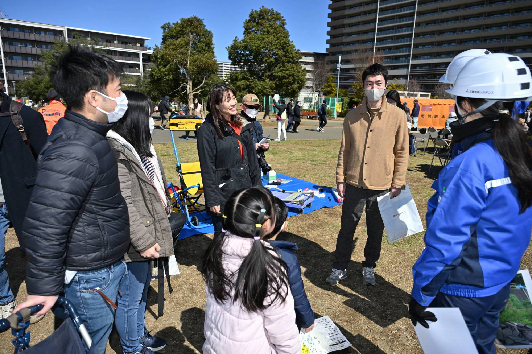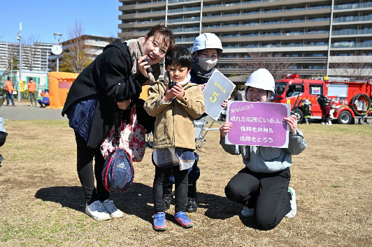 「つながり」をテーマに訓練を実施していることから、谷津奏の杜公園に集まった参加者全員で発災・火災・被災生活に関する〇×クイズを行い、楽しみながらエリア全体で防災知識を高めました。