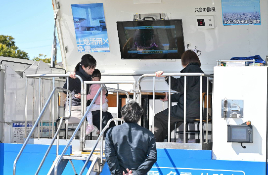 実際に地震が起きた際に冷静な対処ができるよう起震車で地震の揺れを体験しました。