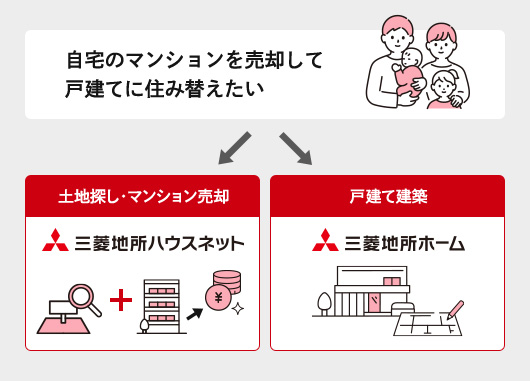 自宅のマンションを売却し、戸建てに住み替えたいというご相談で三菱地所ハウスネットに来店されたお客様。土地探しとマンション売却を三菱地所ハウスネットで、戸建て建築を三菱地所ホームでお手伝いしました。