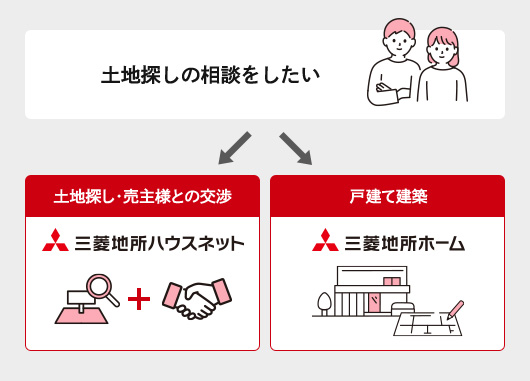 土地探しのご相談で三菱地所ホームに来店されたお客様。三菱地所ハウスネットで土地を探し売主様との交渉をまとめて、土地と建物を同時契約いただきました。