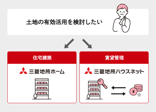 土地の有効活用をご検討のお客様が三菱地所ハウスネットに来店。三菱地所ホームで住宅を建築、三菱地所ハウスネットで賃貸管理のご提案をしました。