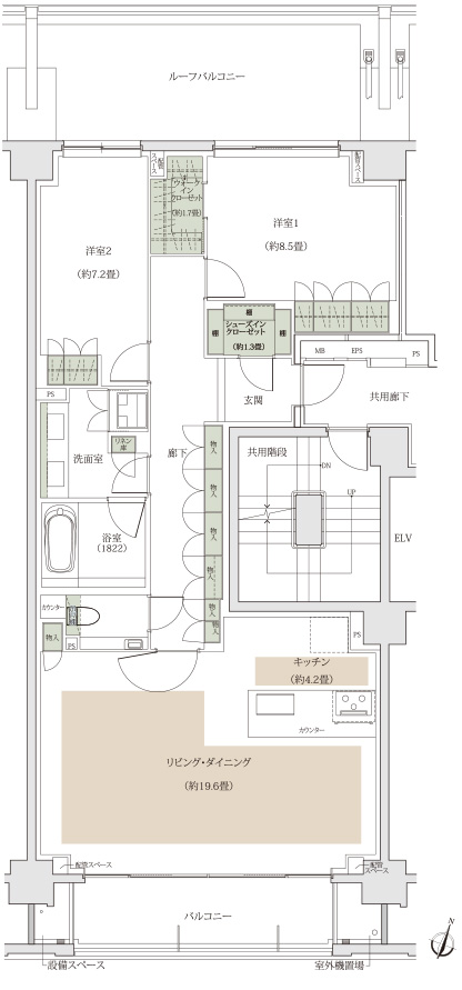ルーフバルコニー面積/21.75m2(約6.57坪)