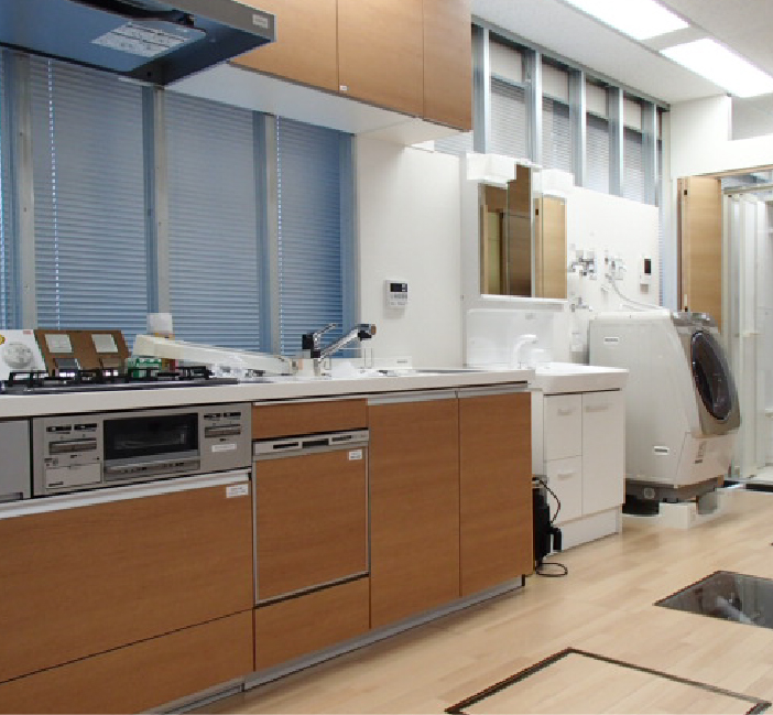 この研修施設には、多様な水栓、洗面、浴室、