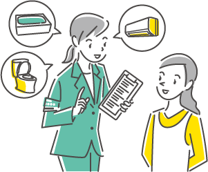 専門スタッフが対象箇所の点検を実施。必要に応じてメンテナンスを行うとともに、設備機器などのお手入れ方法もアドバイスいたします。