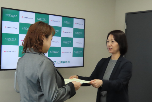 レジデンスケアではサポートデスクのスタッフの中から半期に一度、お客様への対応に優れたスタッフに表彰式を行なっています。回を重ねるにつれて「次は自分も!」という気持ちが芽生え、表彰されることを目標にしているスタッフもいるので、サービス対応のレベル向上につながっています。