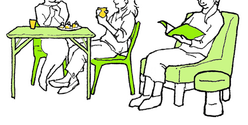 こちらは、子どもが遊べるスペースを併設する事で、目が離せない子どもがいる方も使えるように考えました。子どもの面倒をみながら、また仲のいいご近所の方とおしゃべりをしながら、少しゆったりと過ごすことができそうです。