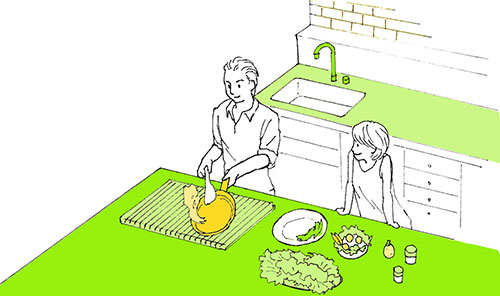 子供の頃、お母さんと一緒にさやえんどうのへたをとったり、餃子をつくったりした経験がある方もいるかもしれません。料理の盛りつけも広い作業台でするのは便利ではありました。