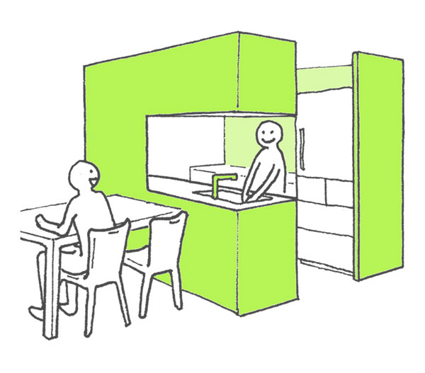 匂いが気になるという方も多いようですが、一方で食事は毎日の家族の最も幸せな時間、食事の匂いで家族が集まり、会話をする、一日の中でみんなで一緒に食事をするのは最も楽しい一時に違いありません。一人の時は、キッチン越しにテレビを見たいという方のご意見も多くありました。
