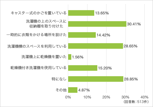 質問14. 洗面室(洗面脱衣室を兼ねた部屋)の洗濯機周りで使い勝手を良くするための工夫をしていることがあれば教えてください(複数回答可)