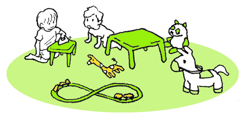 こちらは、子どもが遊べるスペースを併設する事で、目が離せない子どもがいる方も使えるように考えました。子どもの面倒をみながら、また仲のいいご近所の方とおしゃべりをしながら、少しゆったりと過ごすことができそうです。