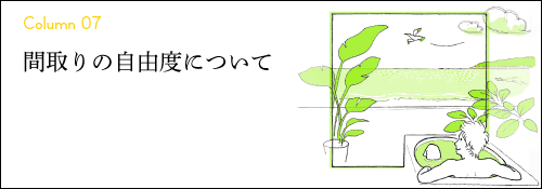 また平面図では説明しにくいのですが、通常の建物には壁の上に梁といった構造体が出てきます。部屋の広さはこの梁によって圧迫感が生まれます。しかしこの建物は、床下にスペースを確保する事で、梁もこの中に納めていますので、部屋の中からは梁のかたちが見えずに、空間はすっきりと見えますし、窓も床から天井までいっぱいにあける事ができるのです。