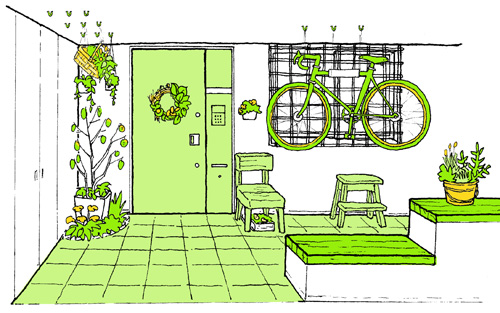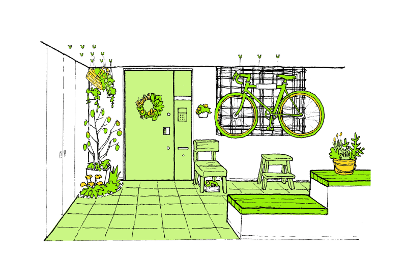 玄関先に季節のリースやプランターを飾る…、戸建ではできてもマンションではできないことが、この玄関ポーチにはいろいろとありそうです。