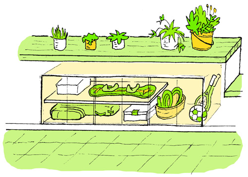 また、大型で使いやすい外部収納をしつらえてもいいですね。バーベキューセットやキャンプ用具、スキー板やブーツ、ベビーカーや三輪車など、家の中にしまうのは難しいけれども、外に出しておけないというものは案外たくさんあるものです。