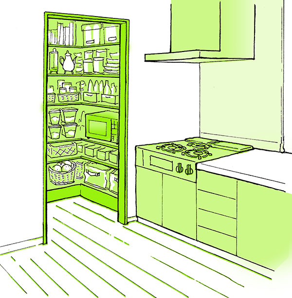 今お住まいの家にパントリーがあるという方は少ないかもしれません。しかしキッチンは作業スペースであり、いろいろな収納も必要です。普段使いの物もあれば、ストック用の物、また来客用の物もあるでしょう。料理をしている時は、機能的に使いたいとも思うでしょう。いろいろな物や作業が入り乱れるキッチンです。もし、専用のストックルーム(パントリー)がキッチンに連続してあればもっと物が整理されるでしょう。