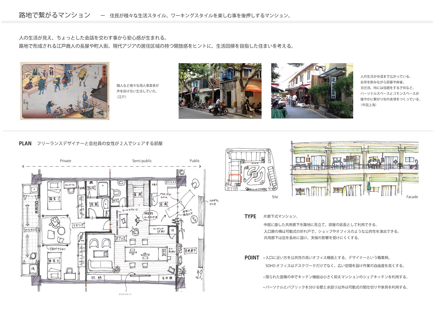 ・審査員特別賞 Open A賞:「路地で繋がるマンション」
