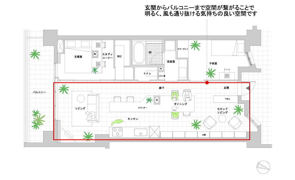 提案3「玄関からバルコニーまでをひとつづきにしたプラン」