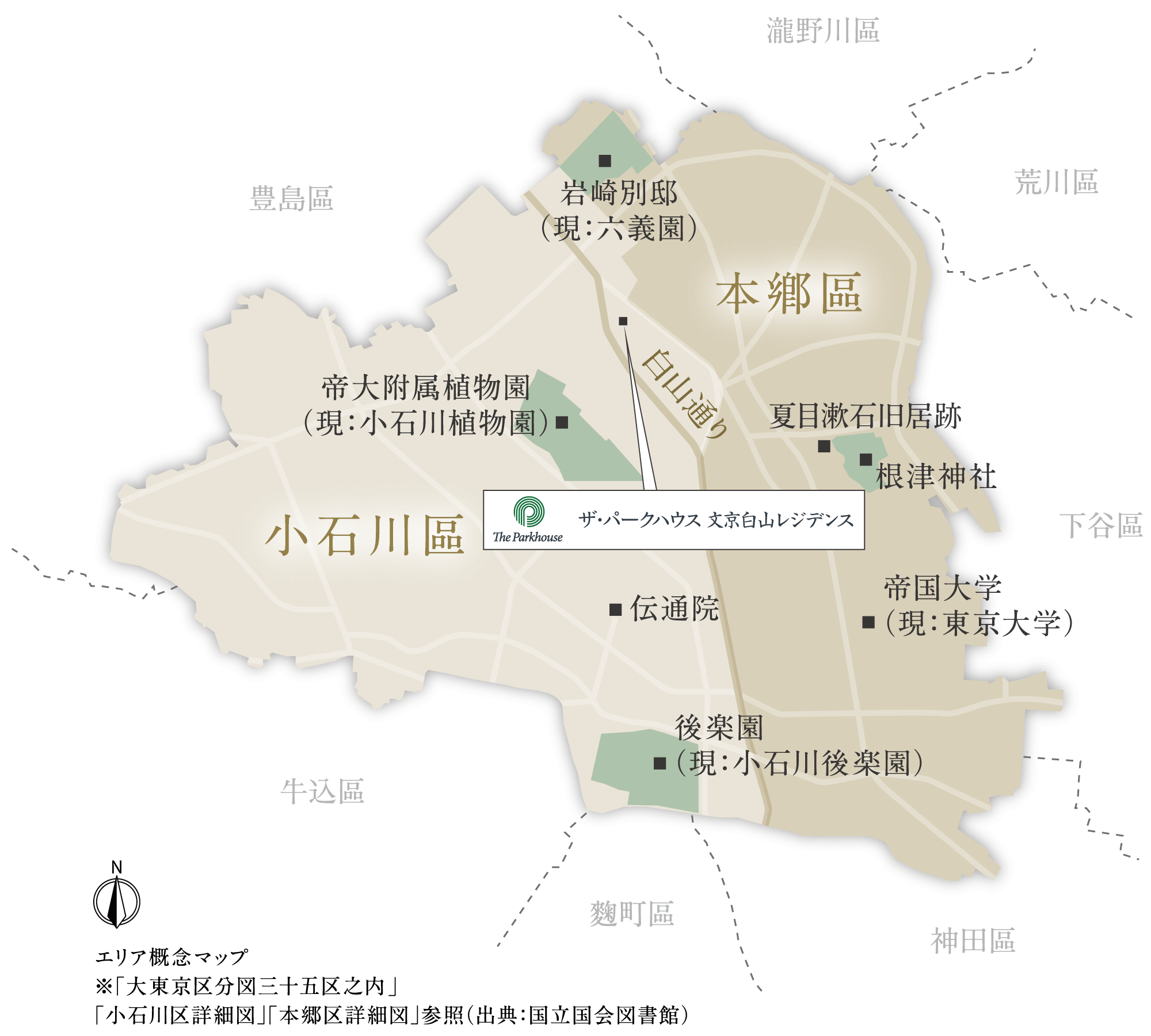 徳川家ゆかりの地である旧小石川区と多くの文人に愛された旧本郷区、