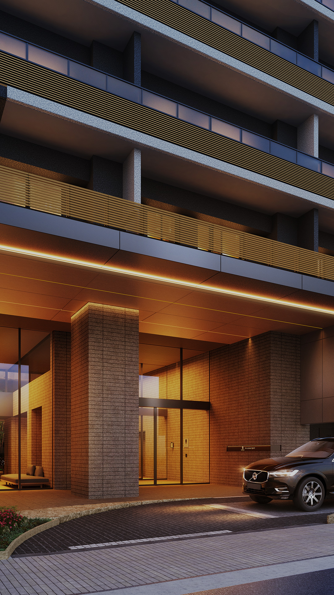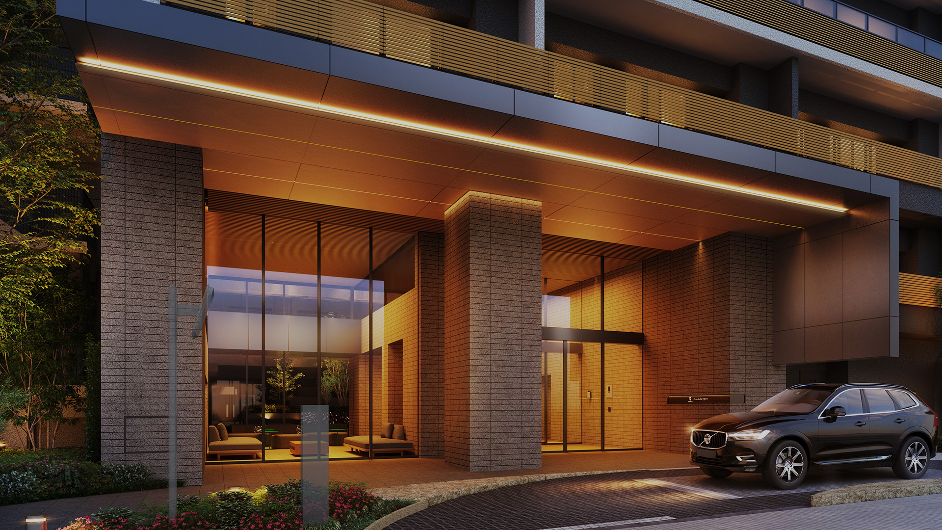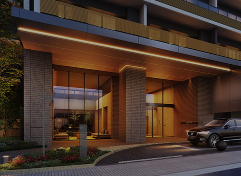 ※掲載のエントランス完成予想CGは、計画段階の図面を基に描き起こしたもので、実際とは異なります。雨樋、エアコン室外機、給湯器、TVアンテナ等再現されていない設備機器等がございます。植栽は、特定の季節やご入居時の状態を想定して描かれたものではありません。周辺道路等は簡略化しております。