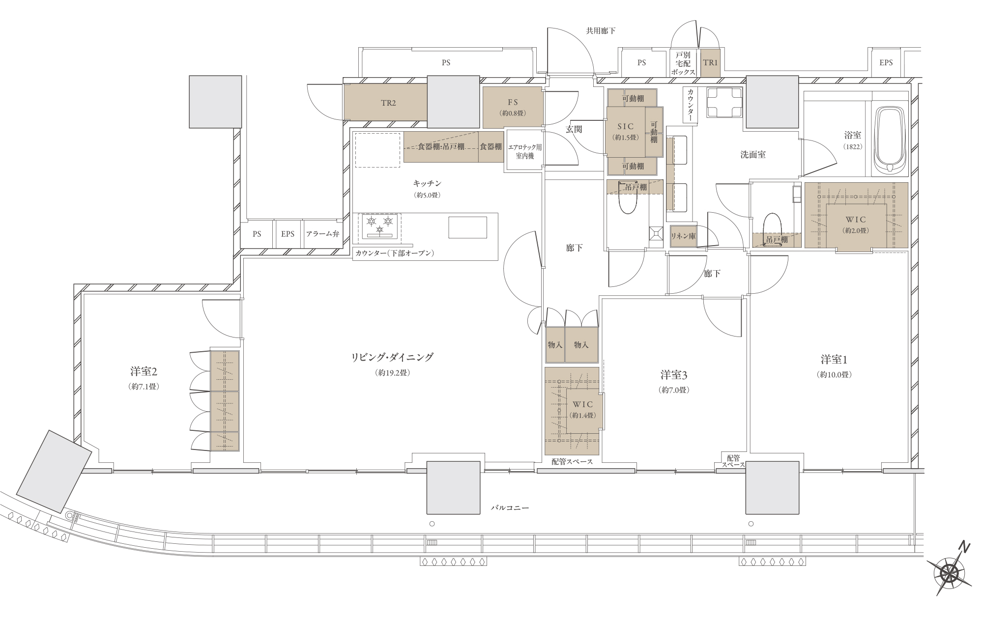 WIC:ウォークインクローゼット SIC:シューズインクローゼット FS:フリーストレージ TR:トランクルーム