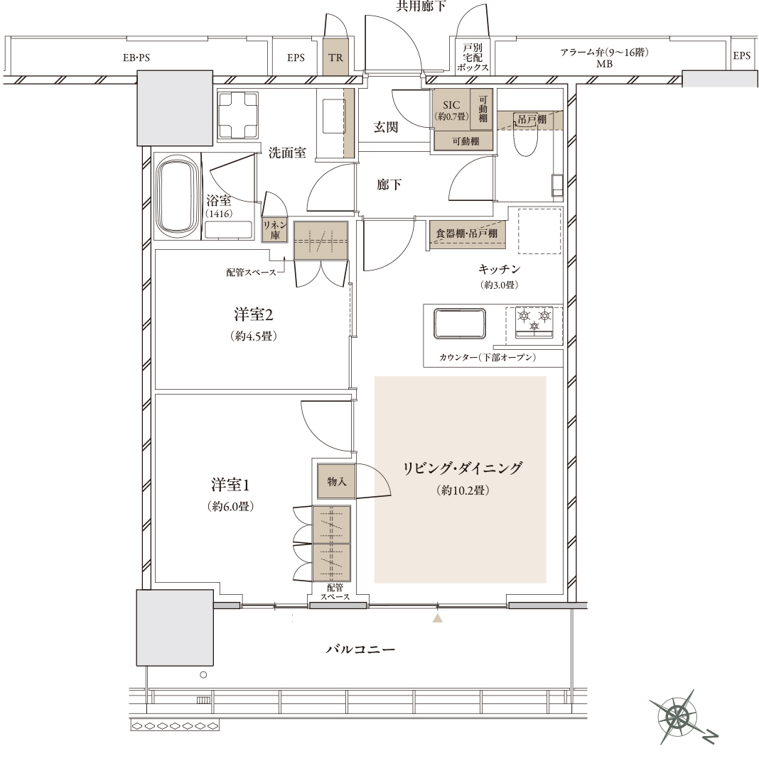 ※トランクルーム面積0.32㎡(約0.09坪) ・戸別宅配ボックス面積0.42㎡(約0.12坪)含む