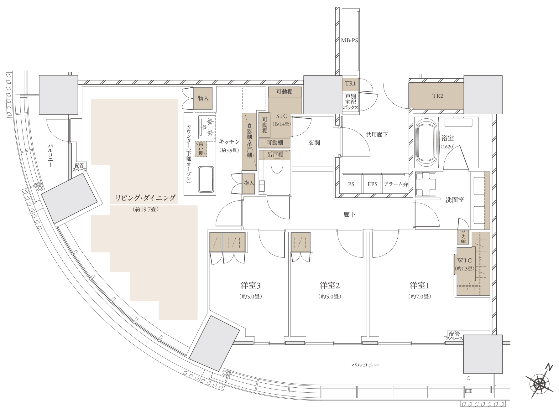 WIC:ウォークインクローゼット SIC:シューズインクローゼット TR:トランクルーム