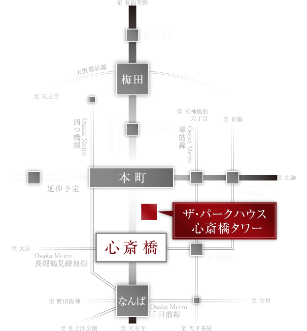 Osaka Metro「心斎橋」駅や「本町」駅をはじめ、
