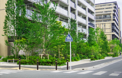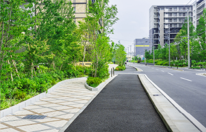 地区計画に基づいて緑豊かな街並みや安全で快適なゆとりある歩行者空間など、