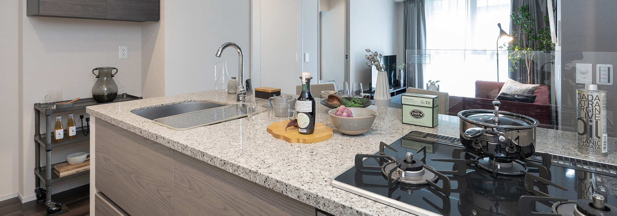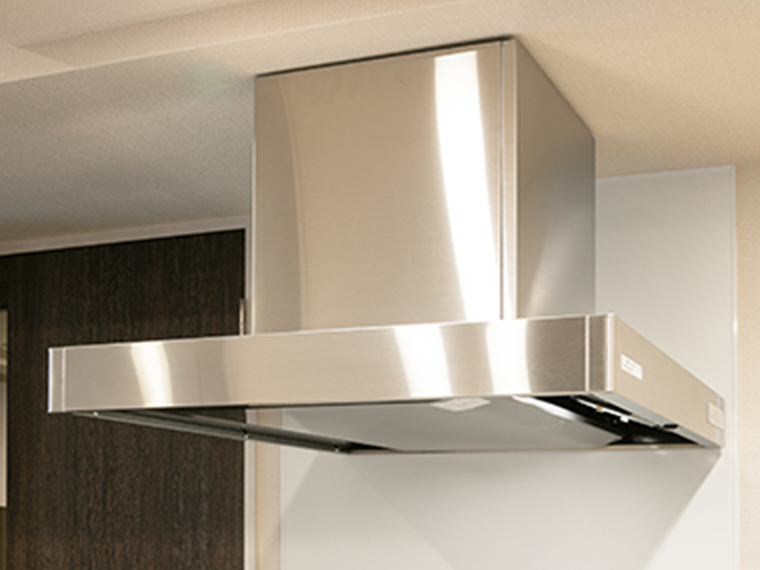 - 油煙をスムーズに排出するスタイリッシュなレンジフード。