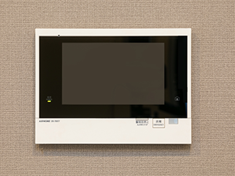 - オートロック解除機能付のインターホン親機を住戸内に設置しました。スマホアプリと連動し、外出先から来訪者を確認、遠隔操作で解錠が可能です。