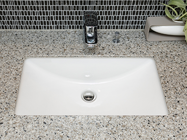 - 傷つきにくく汚れがしみこみにくいカウンターと一体の洗面ボウル。