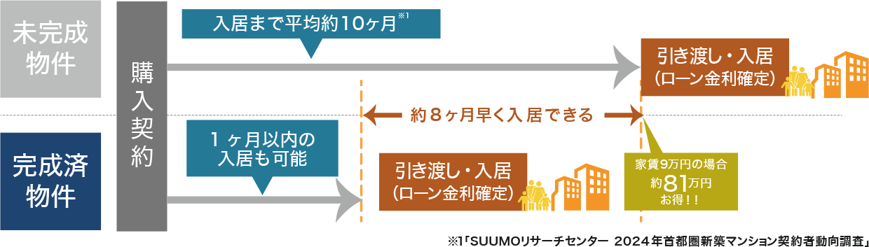竣工後販売物件であれば諸手続き後すぐに入居が可能なので、