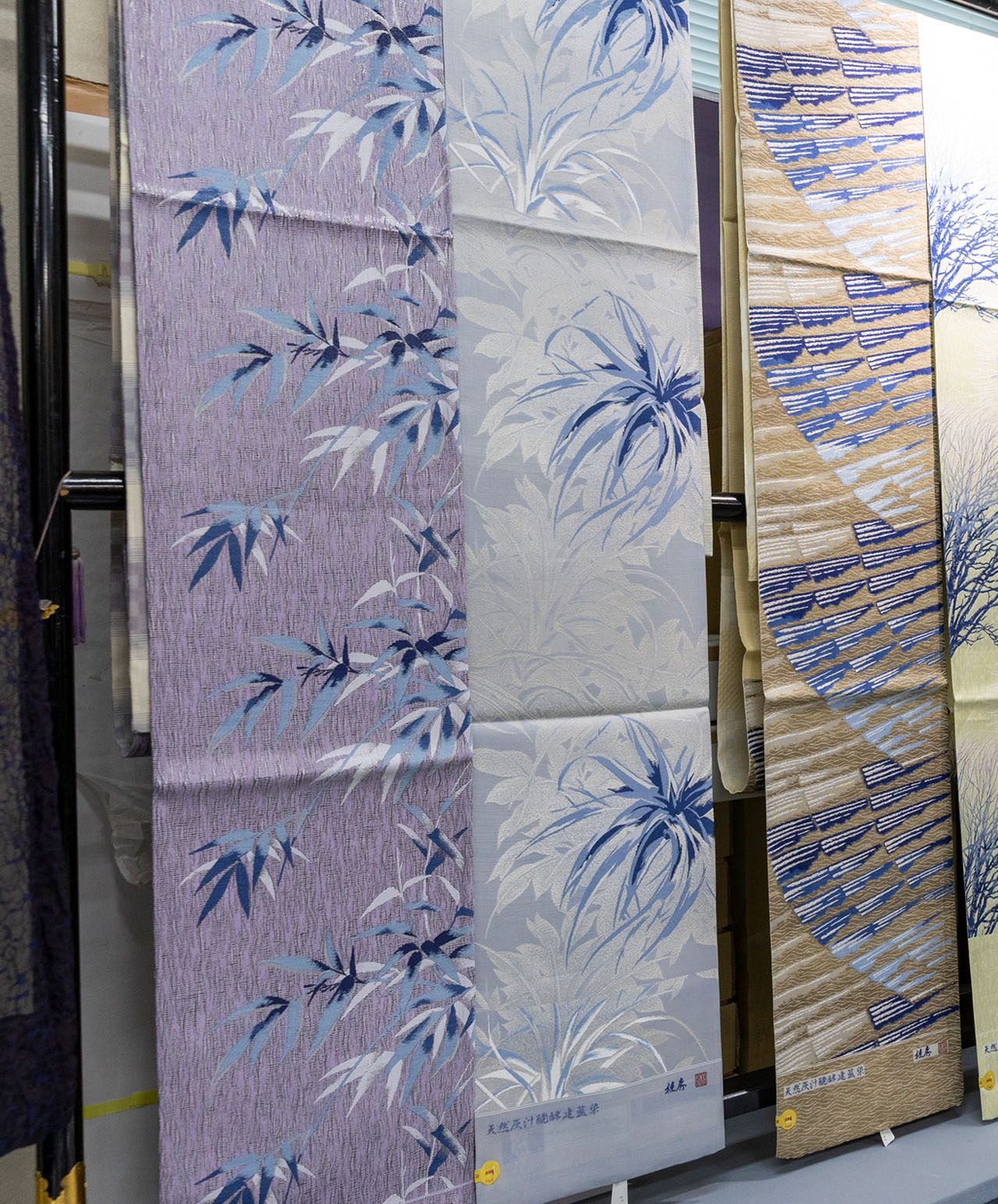 また、日本古来の技法を守る中西さんは、これまでに数多くの格式ある仕事も手がけてきました。神社仏閣への奉納品の制作や、皇室で養蚕されている非常に貴重な蚕「小石丸」の絹糸を染めるなど、日本文化の中枢に関わる仕事も少なくありません。そして活動は国内だけでなく、インドネシアの王室へ作品を寄贈するなど、海外でも広く活躍されています。一方で、伝統にとどまらず、現代の暮らしに寄り添う染めにも取り組んでいます。住宅用のカーテンや、アパレル製品の染色など、藍を日常空間に取り入れる試みもその一つです。空間全体を包み込むような藍の色は、落ち着きと奥行きをもたらします。また、調湿効果や制菌効果、紫外線カットなど、うれしい効果が多数あるのだとか。