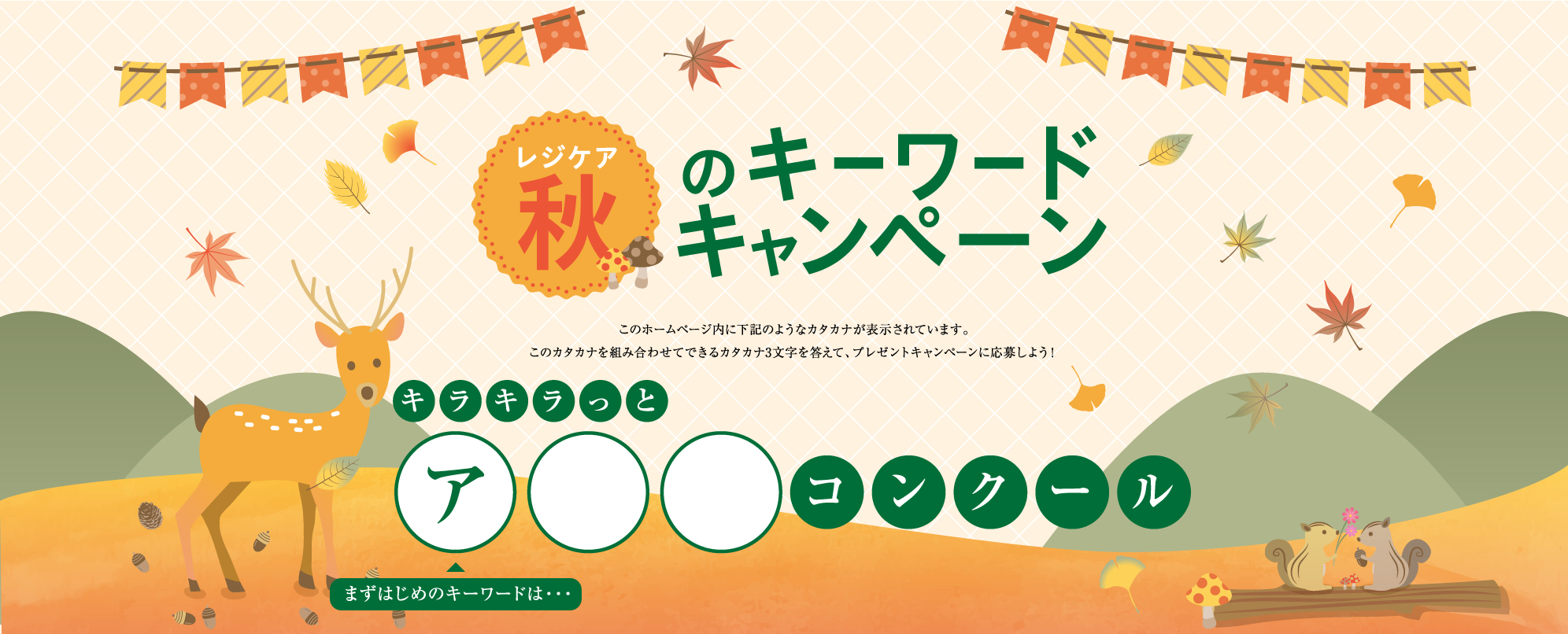 各ページに隠れたキーワードを答えて応募するだけで、