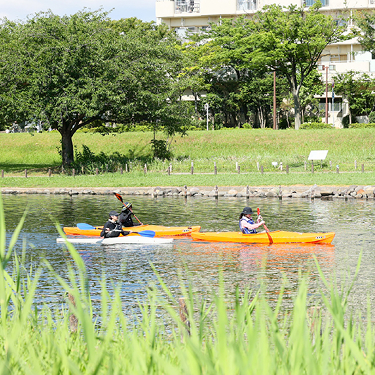 約24.9haの敷地面積の大島小松川公園では、広々とした水辺でカヤック体験などができます。春には千本桜が咲き誇り、都心近くでありながら豊かな自然を満喫できるのも魅力です。