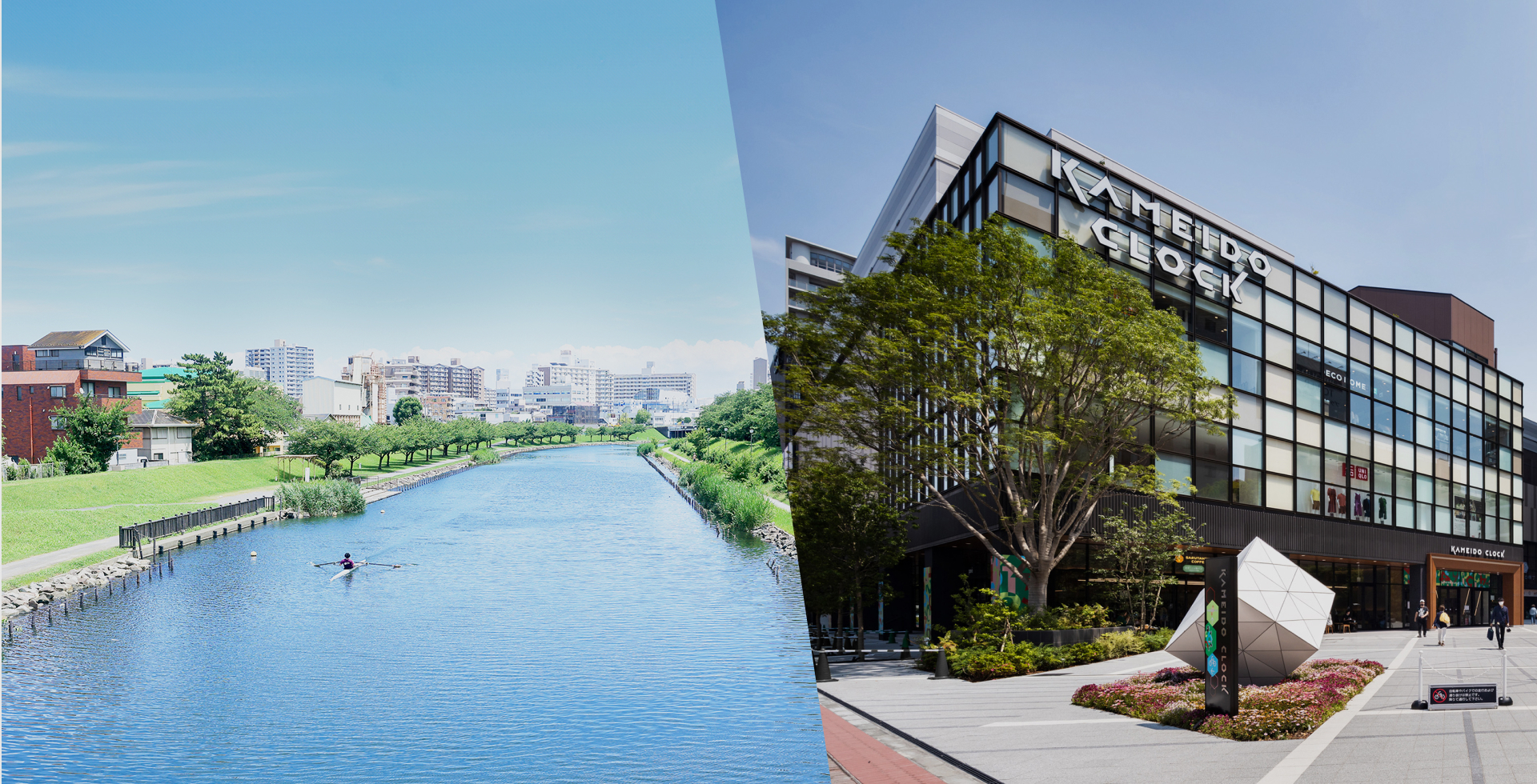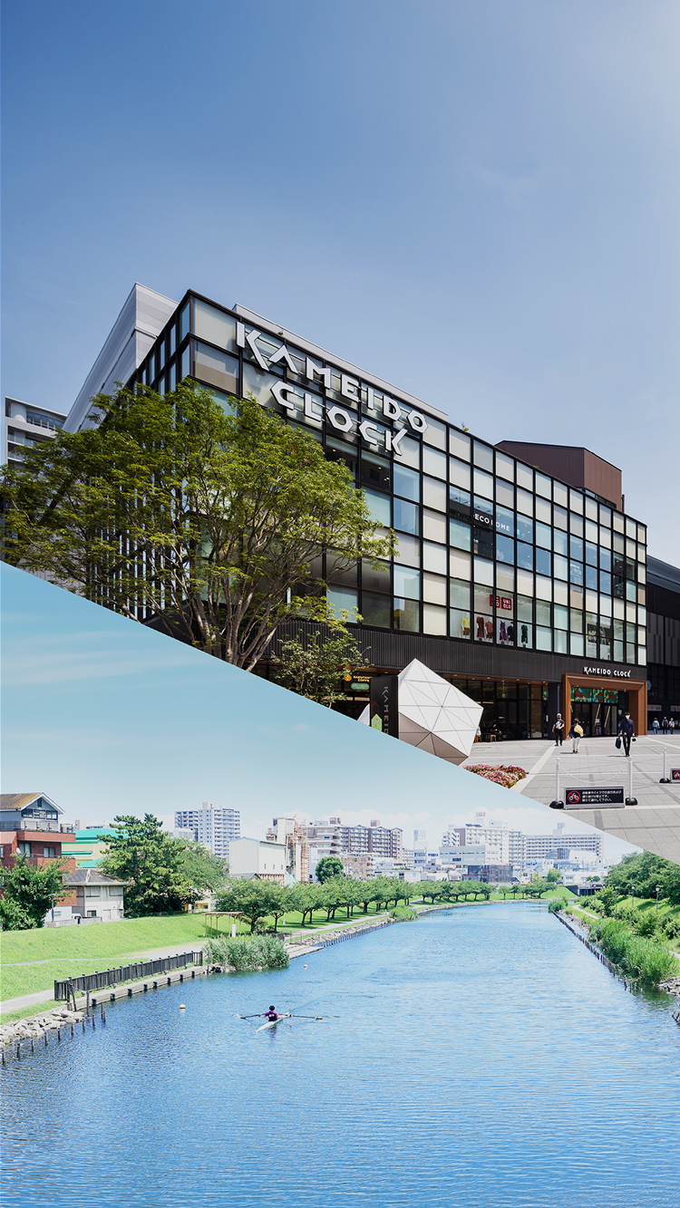 JR「亀戸」駅前にはKAMEIDO CLOCKやアトレ亀戸など、ショッピングから文化芸術まで楽しめる利便と賑わいが集うエリアが広がります。