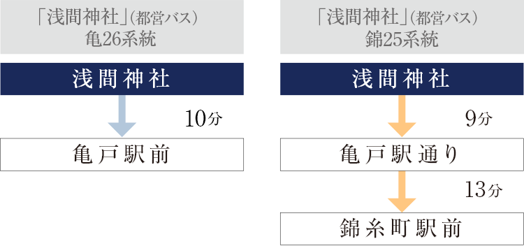 「浅間神社」(都営バス) 亀26系統、錦25系統・27系統