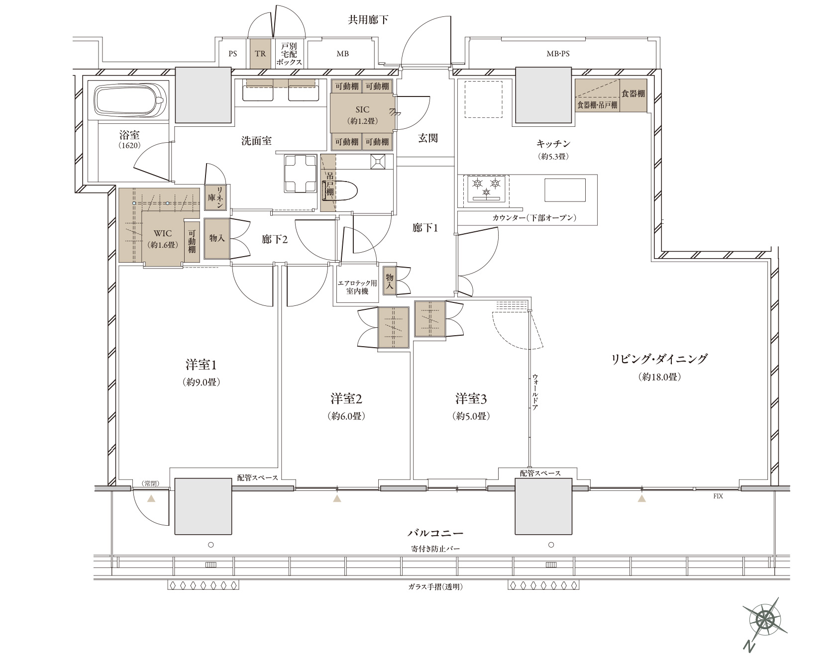 WIC:ウォークインクローゼット SIC:シューズインクローゼット TR:トランクルーム