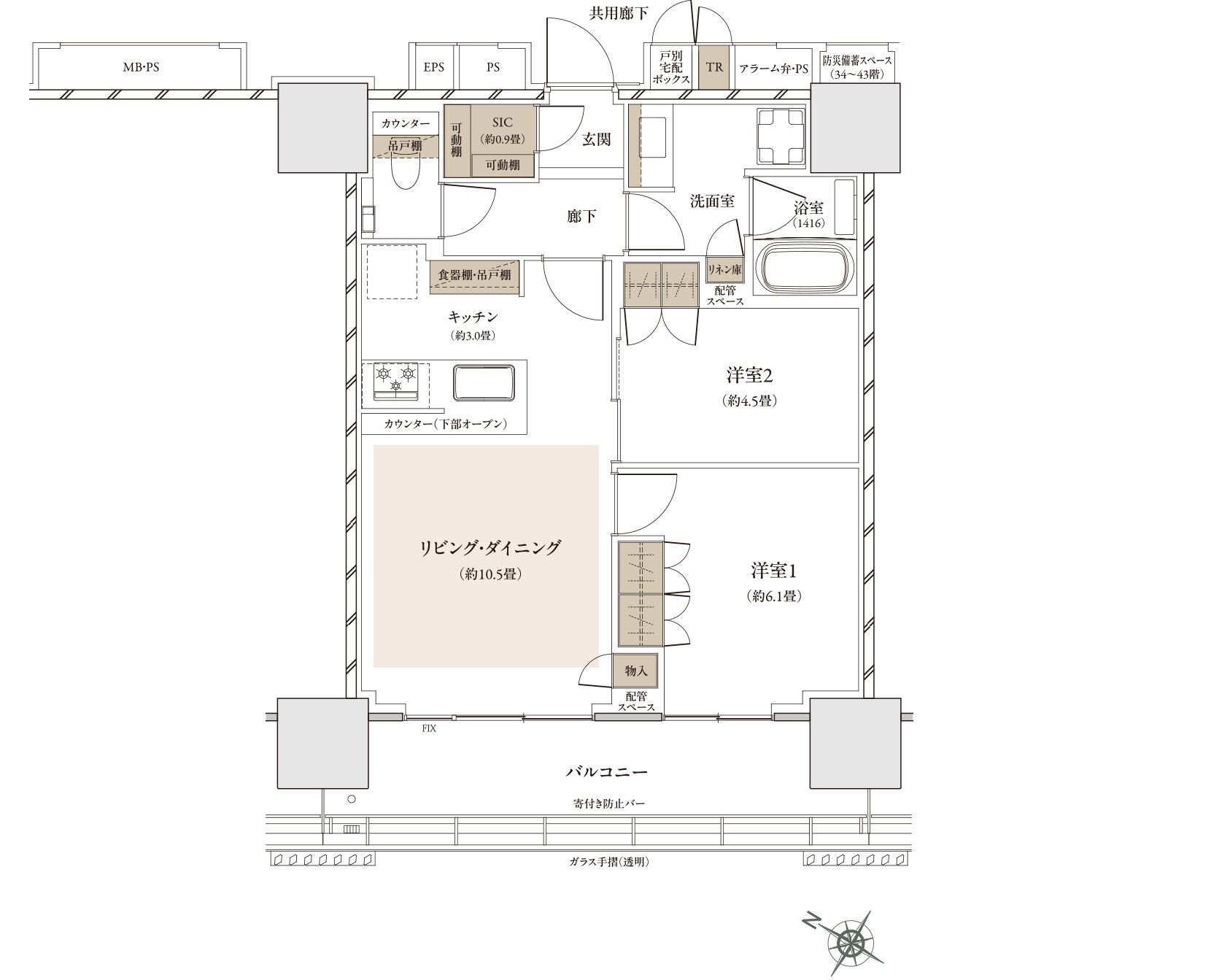 ※トランクルーム面積0.32㎡(約0.09坪) ・戸別宅配ボックス面積0.42㎡(約0.12坪)含む