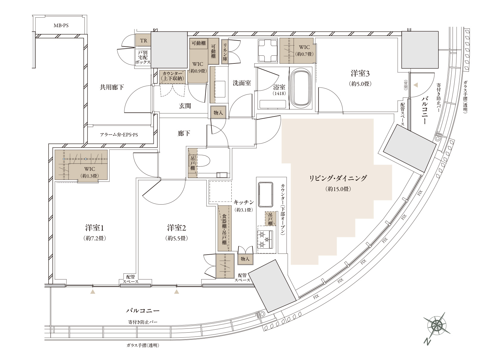 WIC:ウォークインクローゼット SIC:シューズインクローゼット TR:トランクルーム