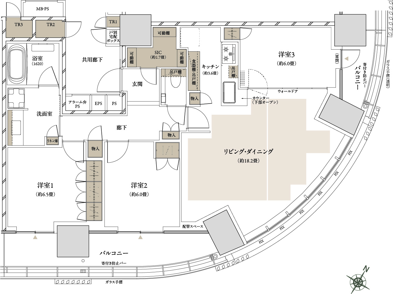 WIC:ウォークインクローゼット SIC:シューズインクローゼット TR:トランクルーム