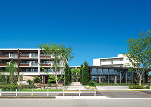 バルコニー部分にガラス素材を用いて軽やかさを演出するとともに、空と緑に映える開放的なファサードを創り上げています。