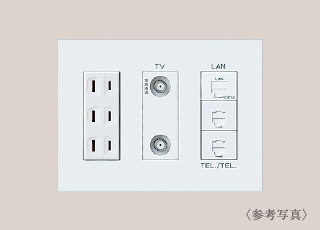 電源、TV、インターネット、電話の端子をまとめたコンセントを全居室に設置しています。