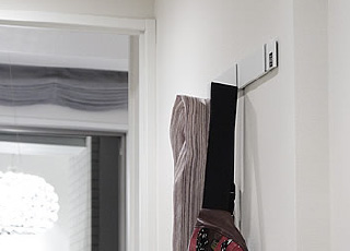 コートや帽子を飾ることができるブラインドフック。フックを格納すると、上質なクローム色が空間を彩ります。スタイリッシュな佇まいで、壁面のワンポイントアクセントとして魅せるアイテムです。