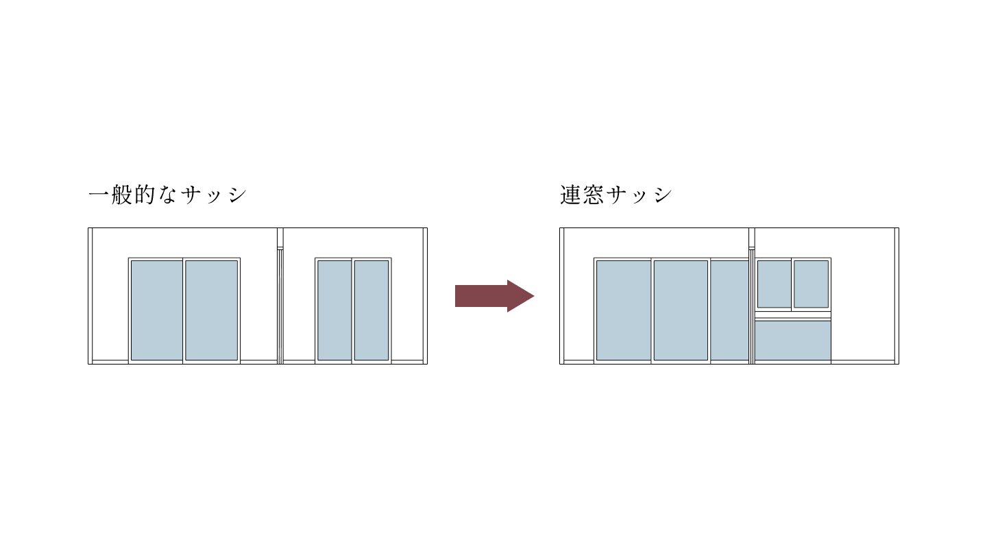 視界をよりワイドにし、光を豊かに取り込むことのできる連窓を採用。(A1,A2,B1,B2タイプ)