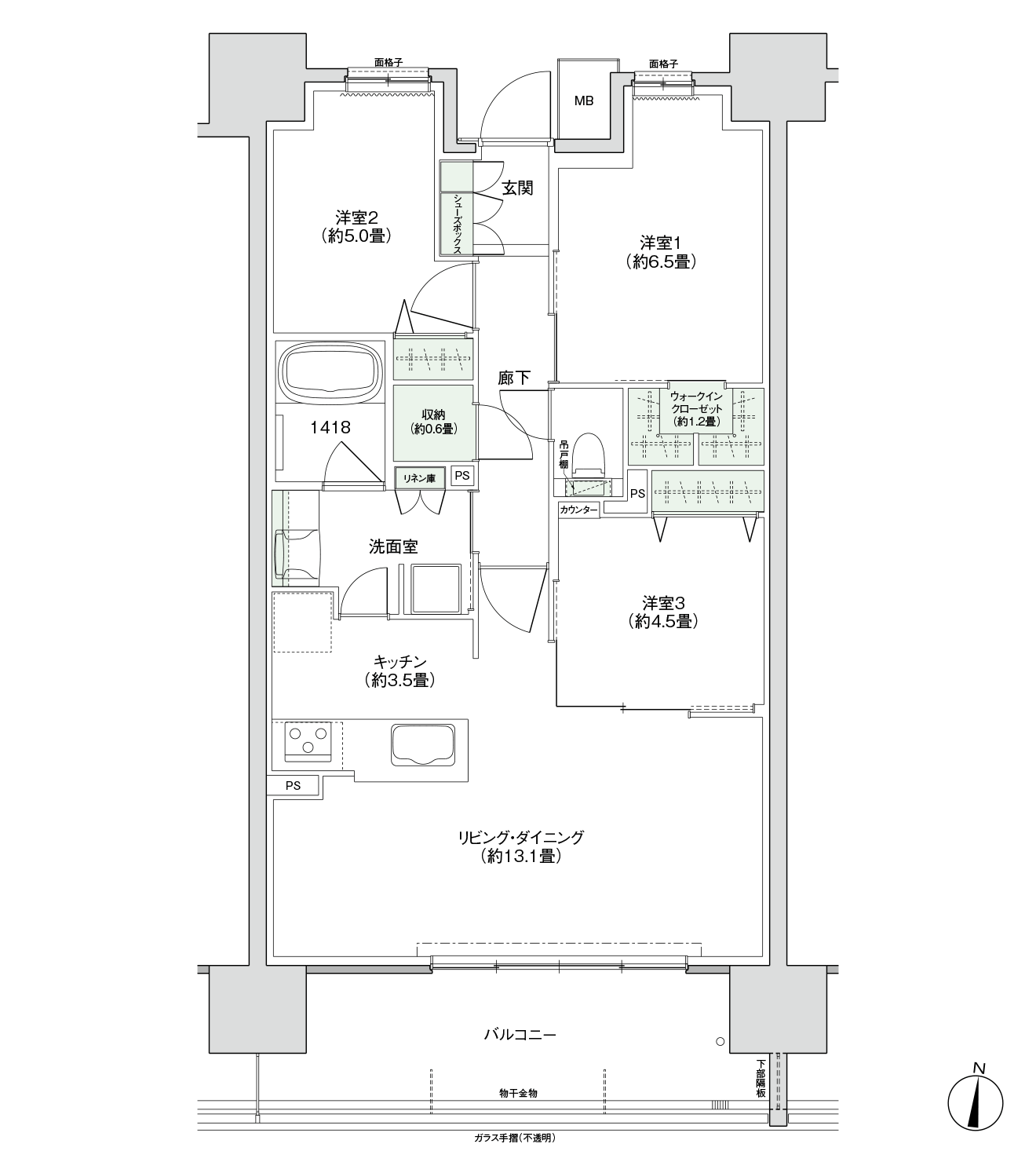 - バルコニー面積:12.63m2(約3.82坪)